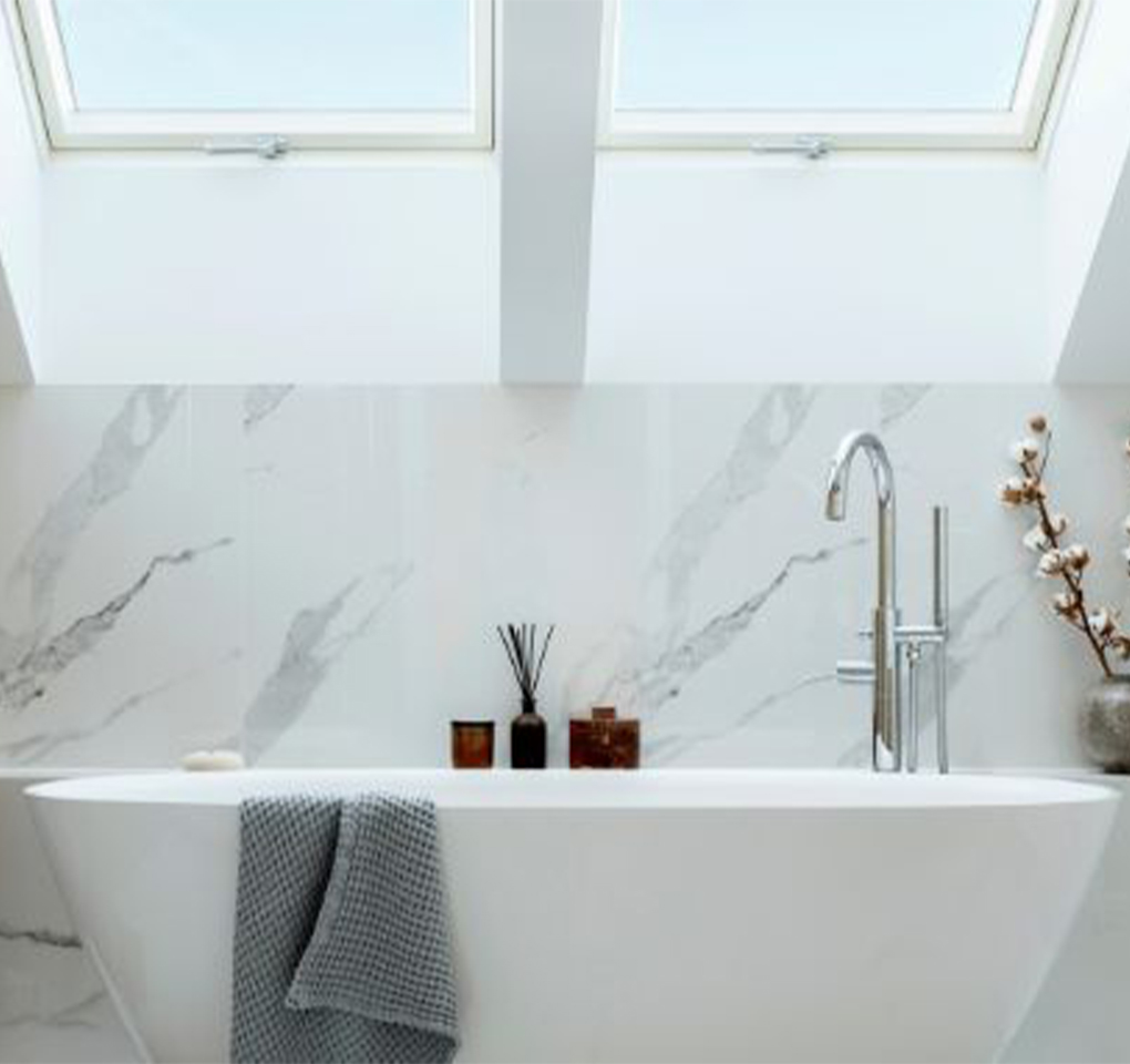 Vient ensuite la difficile combinaison à trouver entre luminosité et respect de votre intimité. Et ce d’autant plus si vos voisins profitent d’une vue plongeante dans votre salle de bains ! Le choix du vitrage de votre salle de bains requiert donc toute votre attention.