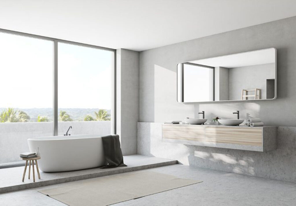 Détente assurée dans cette salle de bains baignée de lumière ! Située en hauteur et sans vis-à-vis, elle offre une vue imprenable sur l’horizon grâce à un grand coulissant positionné face à la baignoire. La décoration épurée peaufine l’ambiance propice au calme et à l’évasion.